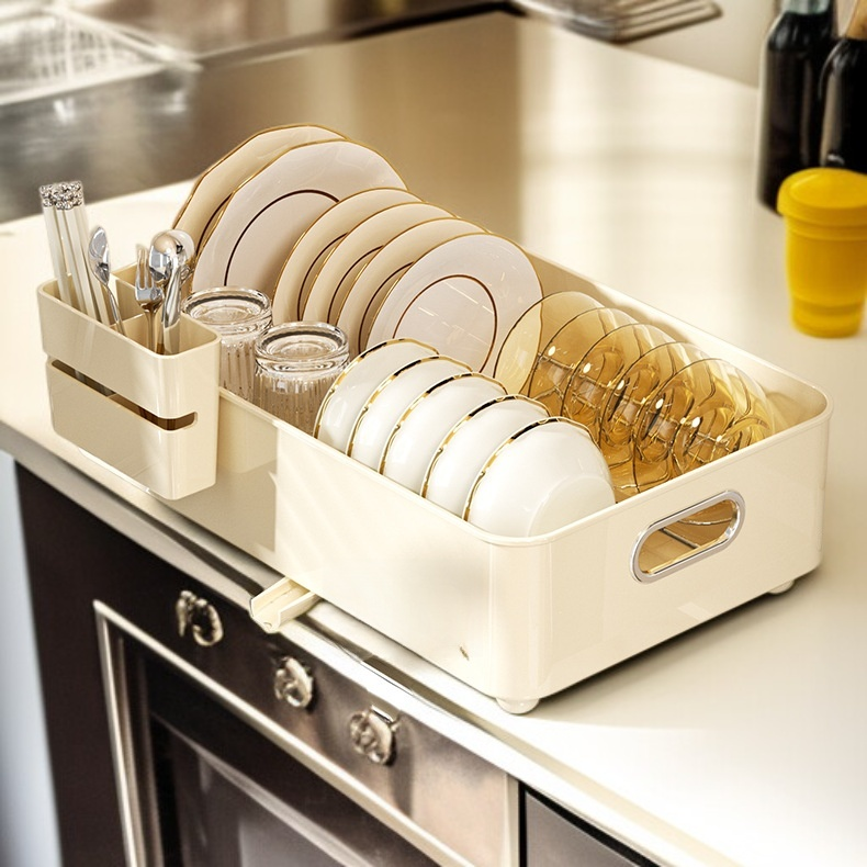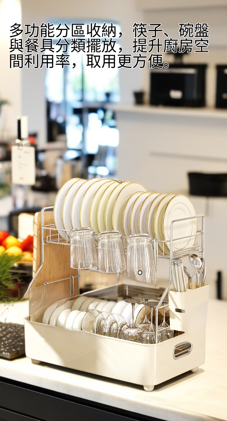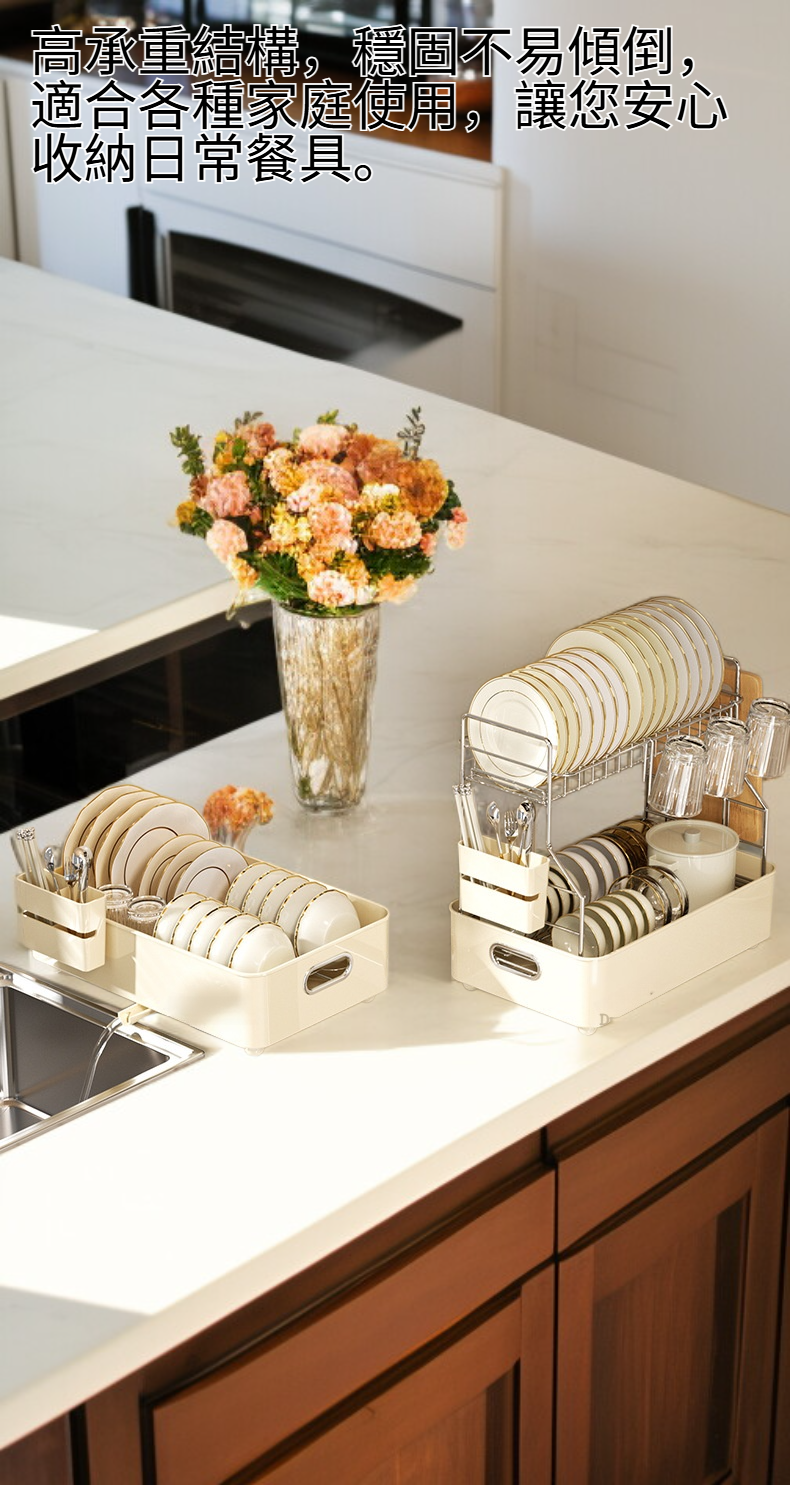 ● 多功能分區收納,碗碟、筷子、餐具分類擺放,晾乾與收納一次完成,保持廚房乾爽有序。